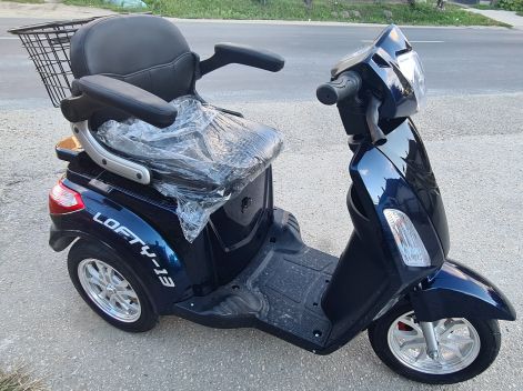 A Lofty-13 Trilux fotelüléses triciklivel újra átélheti a szabadság érzését. A Lofty-13 elektromos háromkerekű járműve fiatalos lendületet ad használójának. 60 fokos nagynyomatékú villanymotorjának köszönhetően leküzd szinte minden akadályt. A félősebb sofőröknek kérésre lefelezzük a jármű végsebességét, hogy a közlekedés teljesen zökkenőmentes legyen. A Lofty-13 ülése alatt egy csomagtartót talál, melyet kulccsal le is tud zárni így értékei mindig biztonságban lesznek. Kényelmes ülése és karfái luxus utazási élményt biztosítanak.